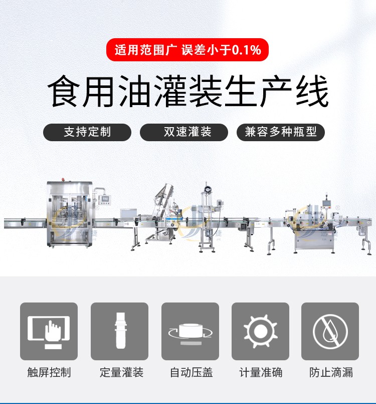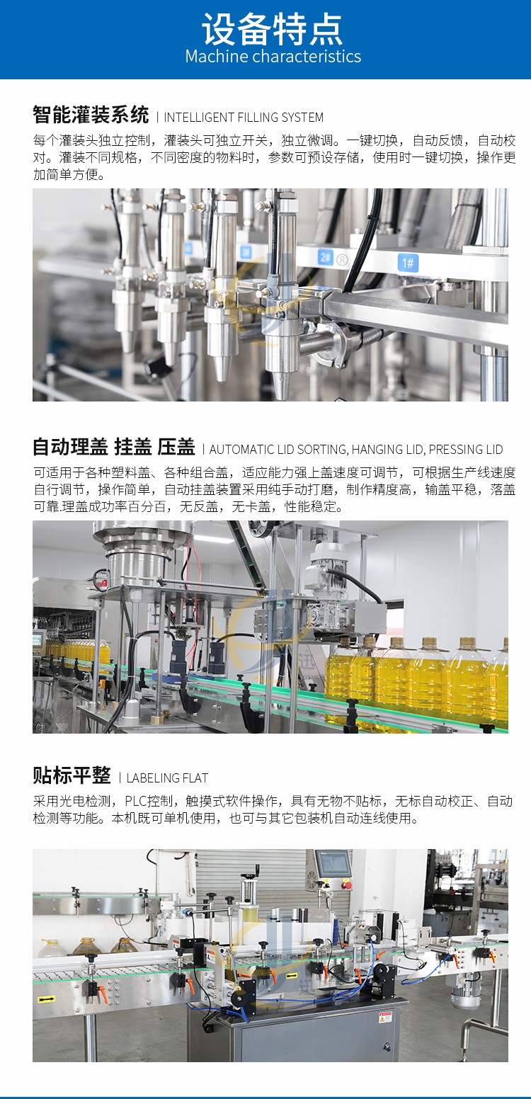 食用油灌裝生產(chǎn)線2-16頭可定制,兼容6種瓶型,容量范圍內(nèi)可兼容多種瓶型的灌裝,一鍵式操作,開(kāi)機(jī)即能使用。