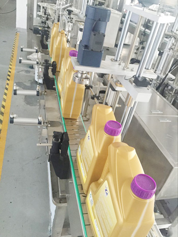 設備描述:潤滑油灌裝旋蓋一體機為活塞式計量方式。計量范圍為1升-5升,離合式旋蓋結(jié)構,確保旋蓋合格率高,不傷蓋。本設備為灌裝旋蓋一體機,結(jié)構緊湊,性價比高。該型號灌裝機適用于醫(yī)藥、日化、食品、農(nóng)藥及特殊行業(yè),是對酒精等液體進行灌裝的理想設備。