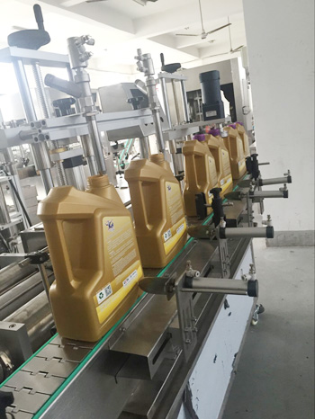 潤滑油灌裝旋蓋一體機為活塞式計量方式。計量范圍為1升-5升,離合式旋蓋結(jié)構,確保旋蓋合格率高,不傷蓋。本設備為灌裝旋蓋一體機